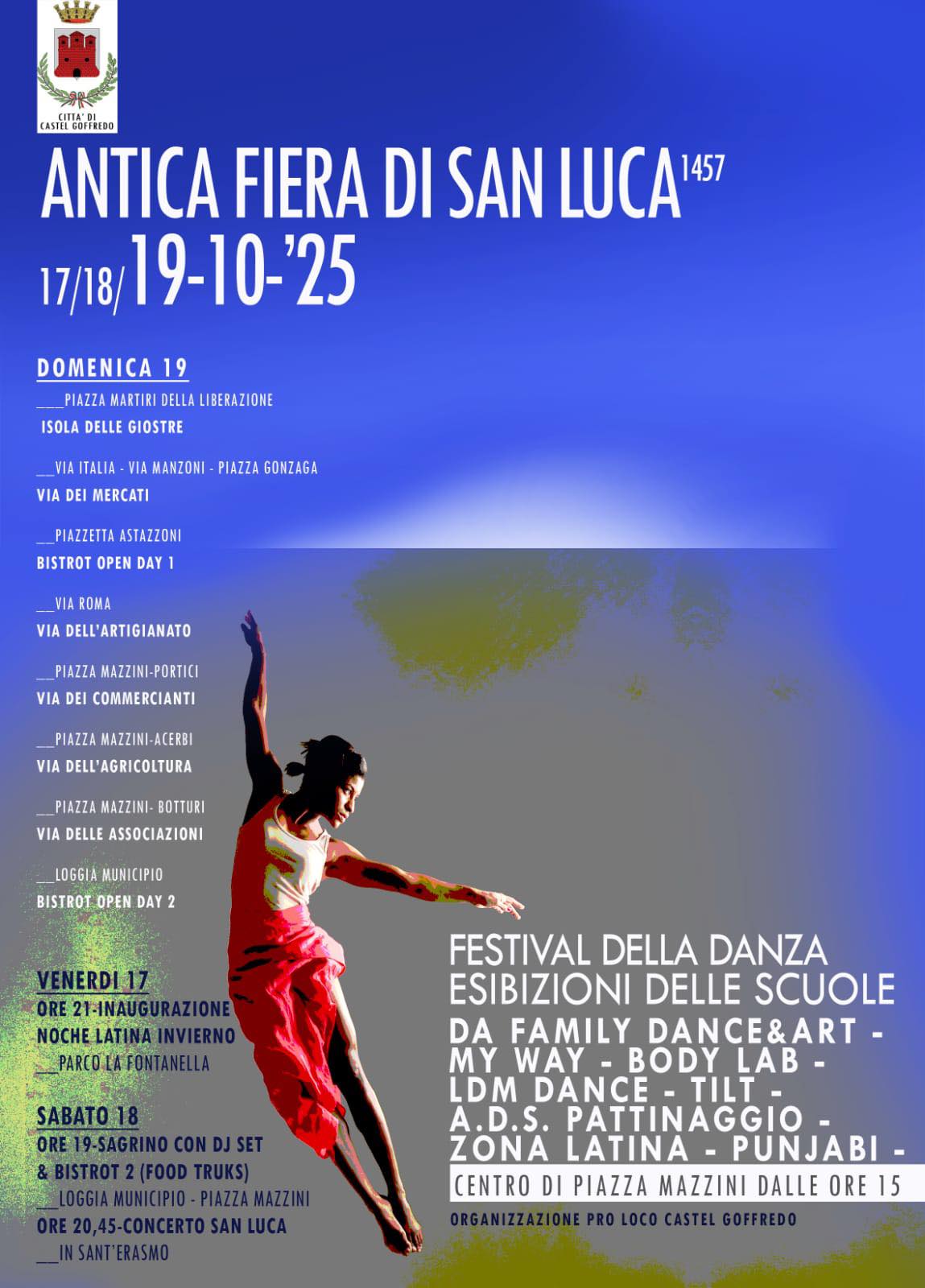 Torna l'annuale appuntamento con l'Antica Fiera di San Luca che, quest'anno, si presenta ancora più estesa e coinvolgente per tutti con il seguente programma (vedi anche la locandina):