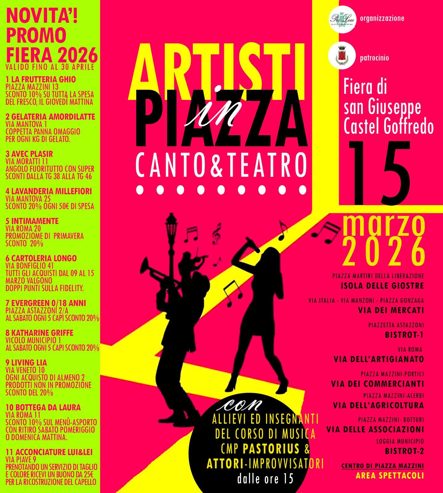 Il Comune di Castel Goffredo, in collaborazione con Pro Loco, Associazioni Locali e Commercianti, presenta l'Antica Fiera di San Giuseppe 2026 con il seguente programma: